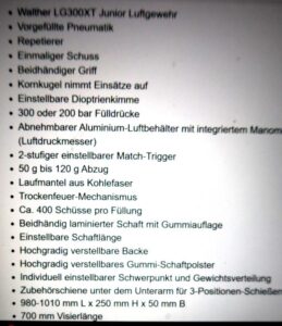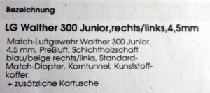 • Luftgewehr Walther 300 Junior, 4.5 mm Preßluft (NP 1400.- €)